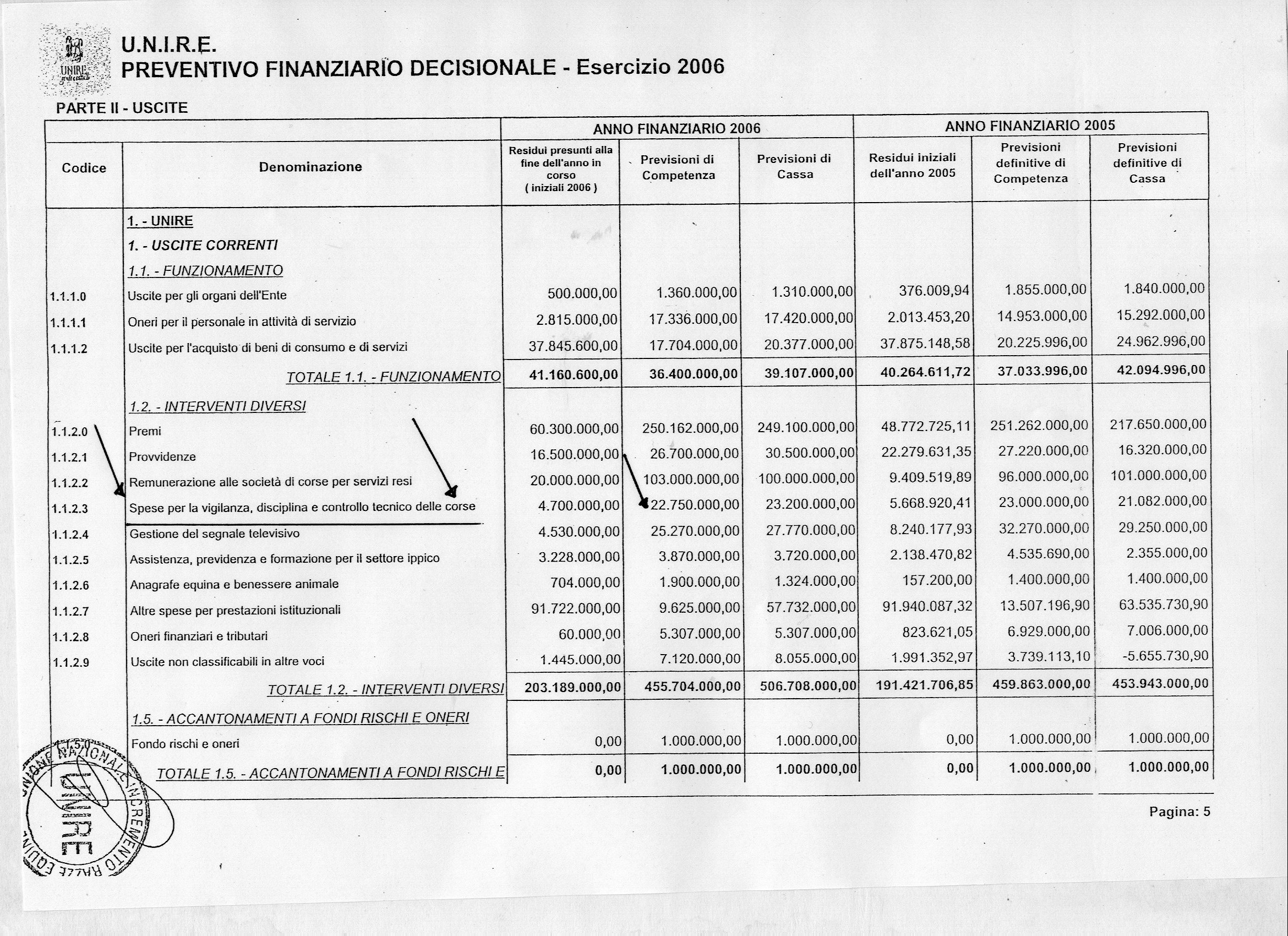 Pubblichiamo, nel file allegato, copia della cartella estratta dal preventivo finanziario decisionale - esercizio 2006, con specificate le spese sostenute per la vigilanza, disciplina e controllo tecnico delle corse.
