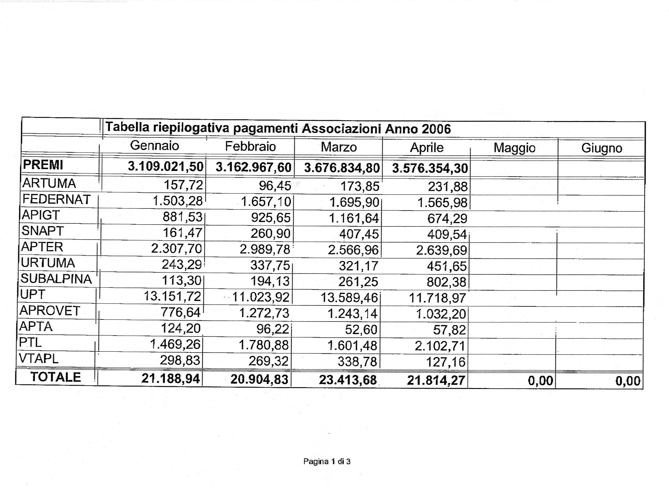 Pubblichiamo, nel file allegato, tabella riepilogativa pagamenti associazione proprietari relativi all'anno 2006.