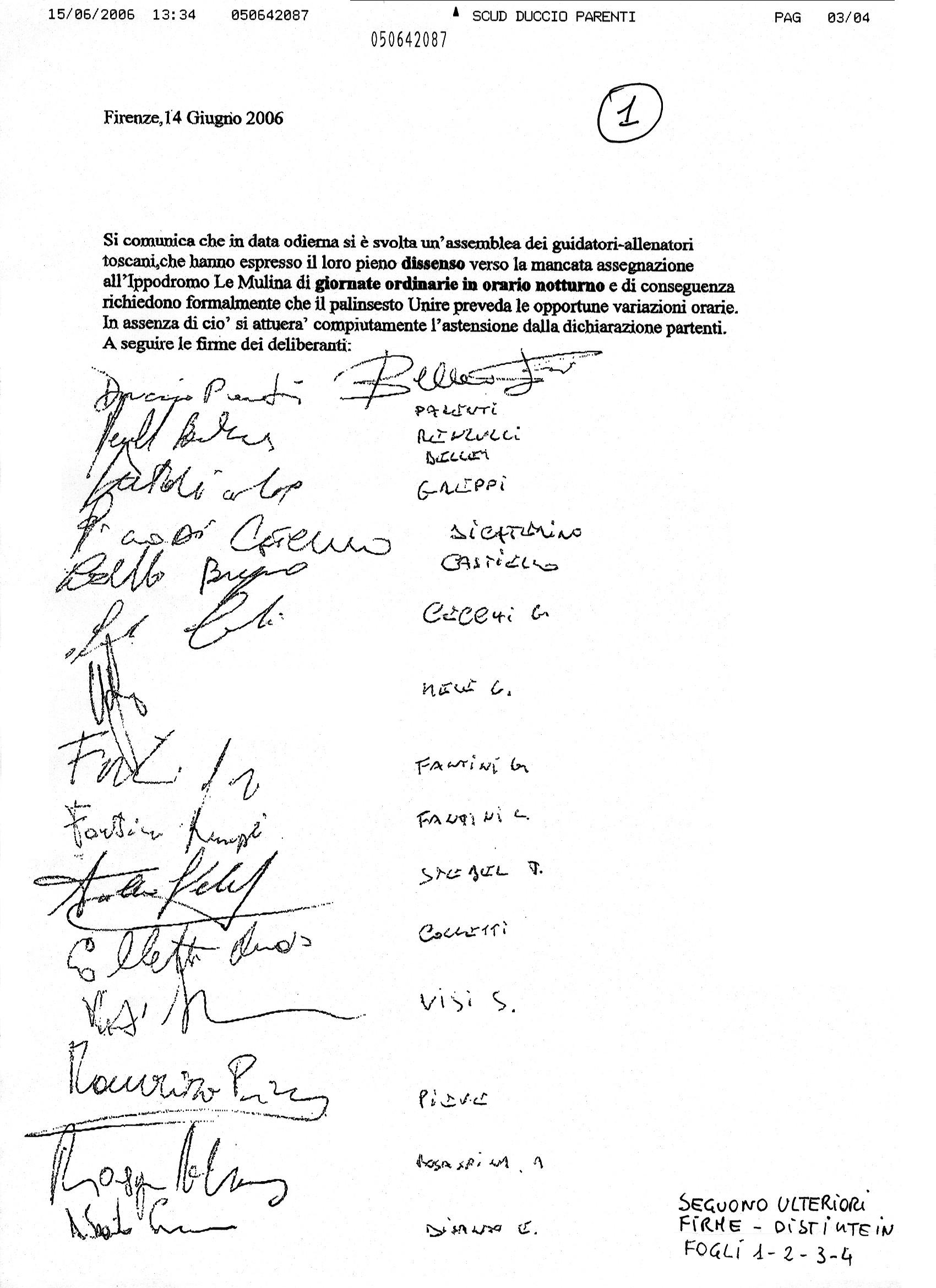 Pubblichiamo, nel file allegato, comunicato sottoscritto dai guidatori-allenatori toscani, con il quale esprimono il proprio dissenso per la mancata assegnazione di giornate ordinarie in orario notturno all'ippodromo Le Mulina. In assenza di variazioni al palinsesto attueranno l'astenzione dalla dichiarazione dei partenti. |