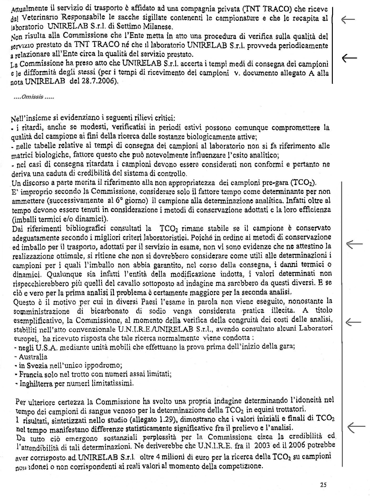 Pubblichiamo, nel file allegato, il paragrafo "Trasporto dei campioni di sangue e/o urine in appositi contenitori inseriti in borse sigillate dagli ippodromi al laboratorio di analisi UnireLab Srl di Settimo Milanese", estratto dalla relazione della Commissione Ministeriale voluta dal ministro Paolo de Castro per esaminare l'operato dell'Unire. |