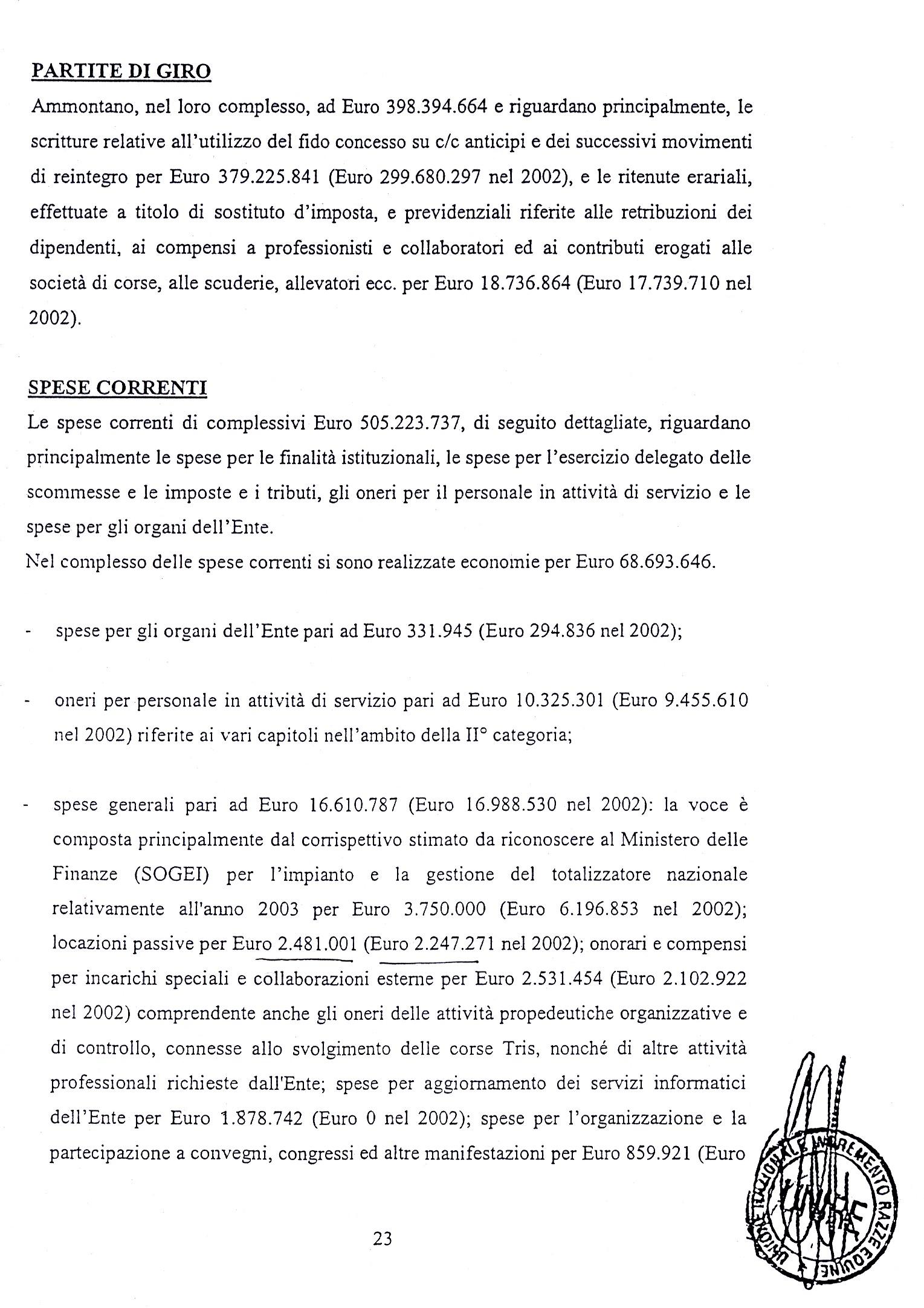 | Prima pagina: Estratto relazione illustrativa Conto Consuntivo 2003 - pag. 23 |