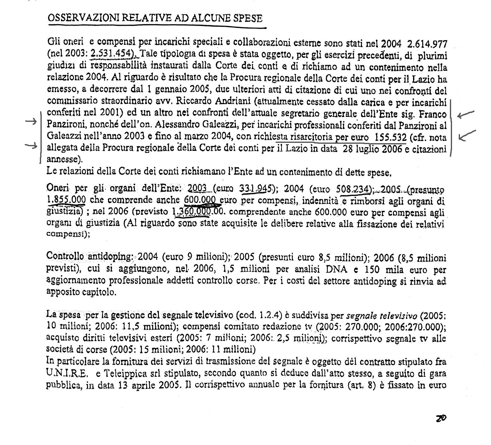 Pubblichiamo, nel file allegato, un estratto della relazione della Commissione Ministeriale, voluta dal ministro De Castro, paragrafo "Osservazioni relative ad alcune spese"