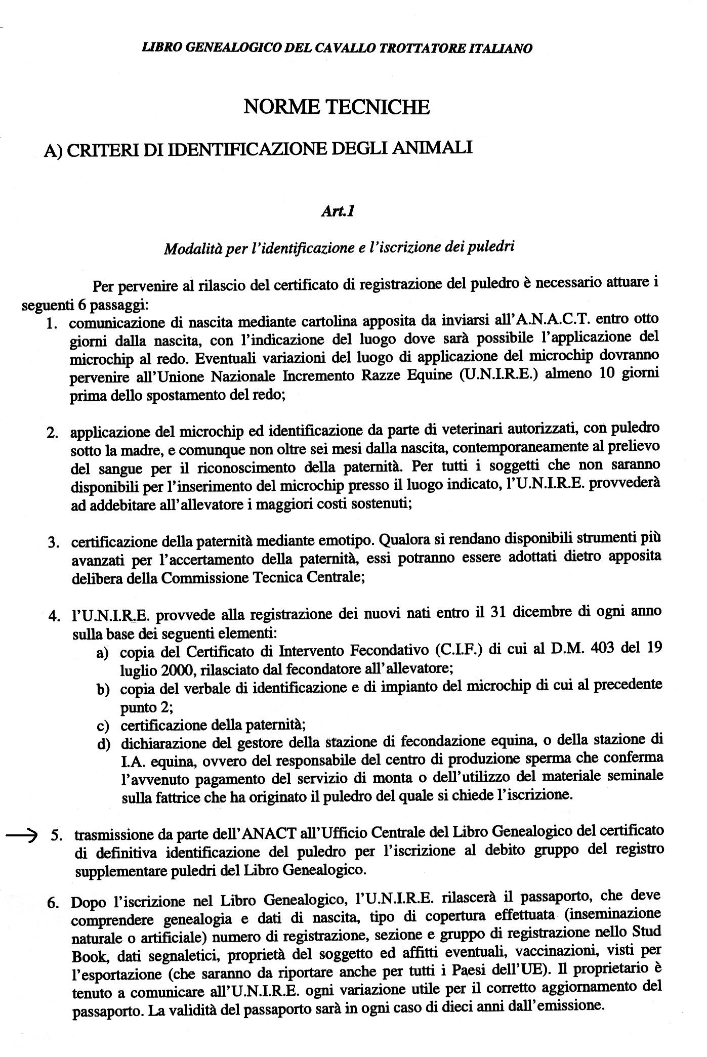 Pubblichiamo, nel file allegato, l'art. 1 - modalità per l'identificazione e l'iscrizione dei puledri - delle norme tecniche del Libro Genealogico del Cavallo Trottatore Italiano.