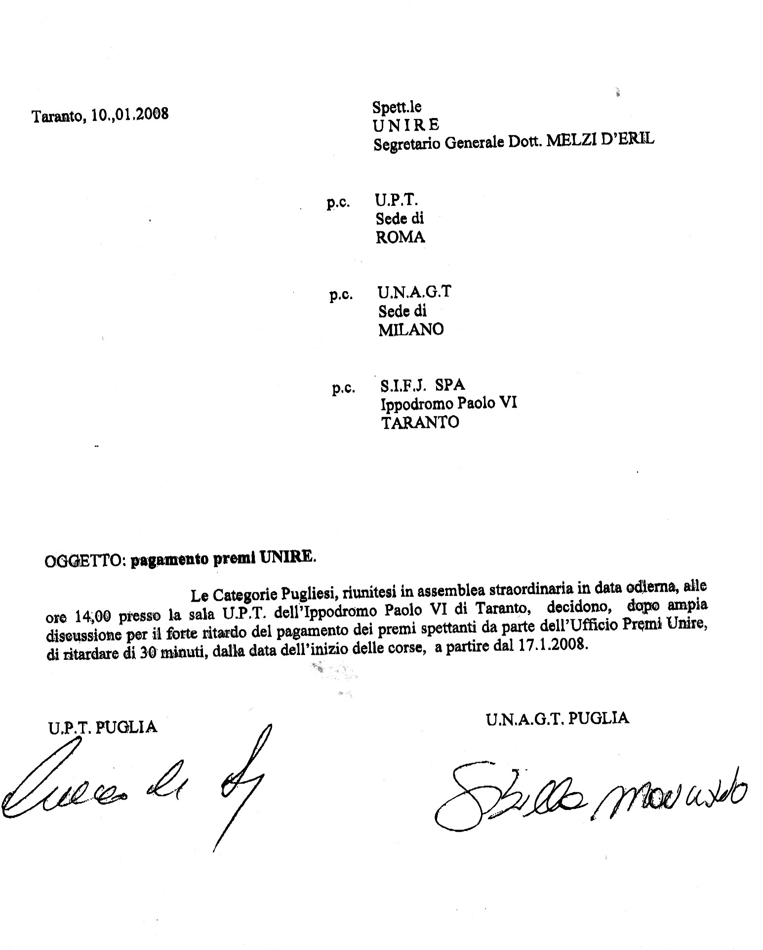 Pubblichiamo, nel file allegato, il comunicato emesso dalle categorie dei proprietari e allenatori pugliesi.