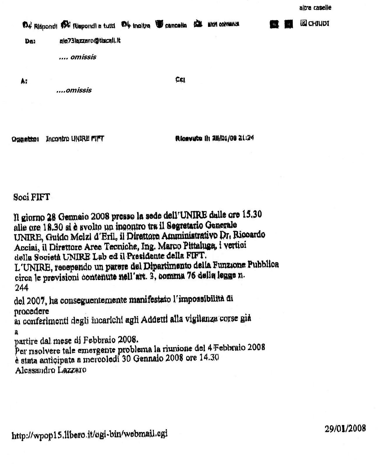 Pubblichiamo, nel file allegato, l'informativa trasmessa dal Presidente Fift - Alessandro Lazzaro - ai propri soci, in merito all'esito della riuniune Unire-Fift del 28 gennaio 2008.