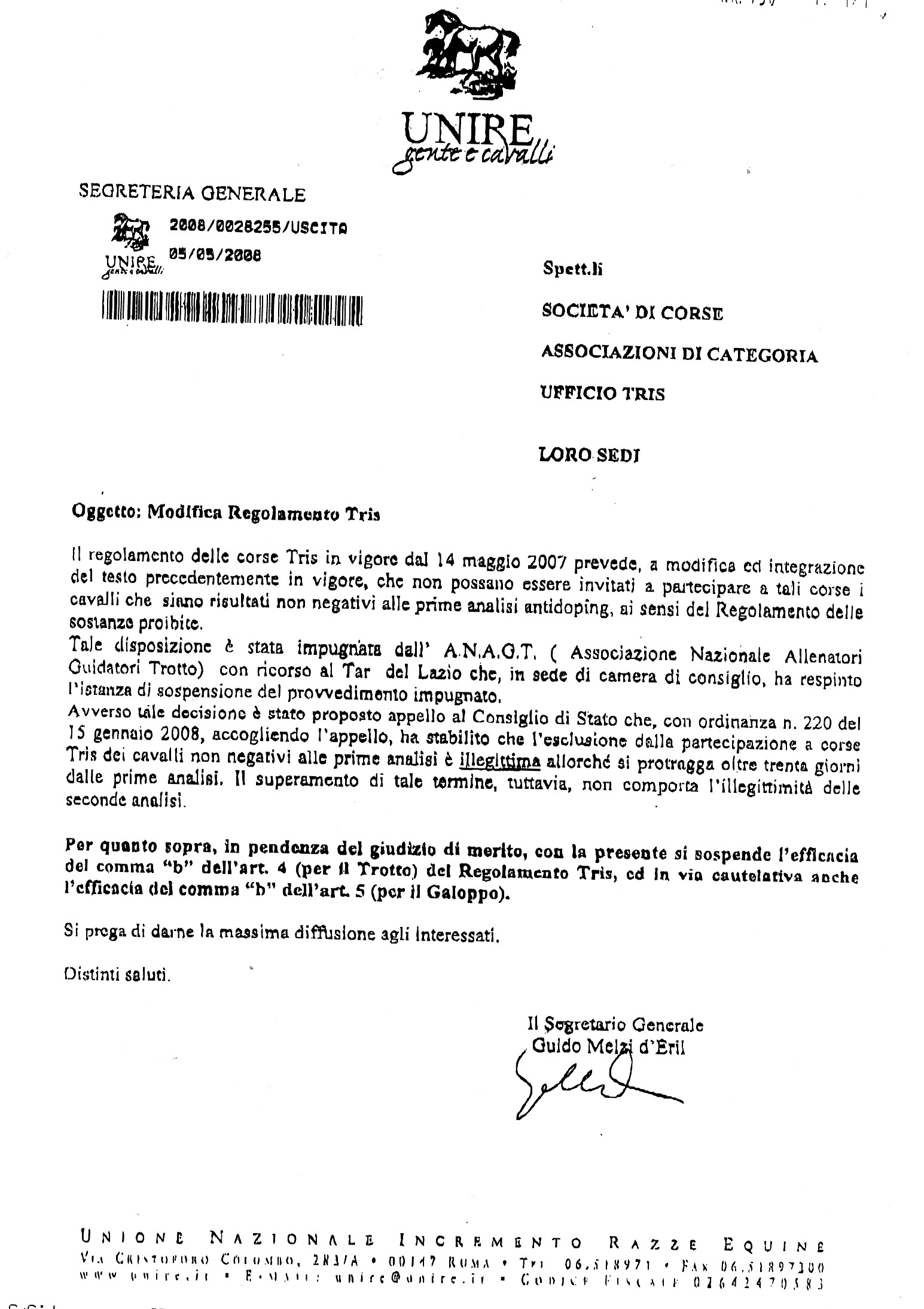 Pubblichiamo, nel file allegato, circolare Unire, Segretario Generale,