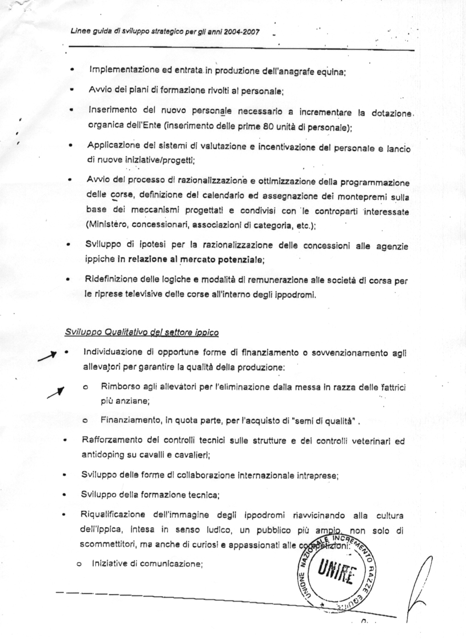 Allegati per Atti amministrativi: Del. CDA n. 9 del 01.04.04: Linee guida di sviluppo strategico dell'UNIRE per gli anni 2004-2007
